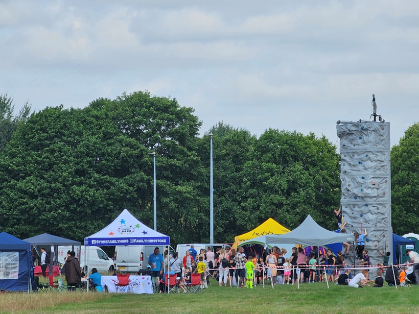 In partnership with Stoke-on-Trent City Council this summer also saw the HAF programme reach further into local neighbourhoods through the Strengthening Communities initiative. Three large scale Community Fun Days were held in Meir, Abbey Hulton, and Ball Green – offering free activities such as climbing walls, inflatables, bushcraft, football sessions, arts and crafts, and nutritious packed lunches.