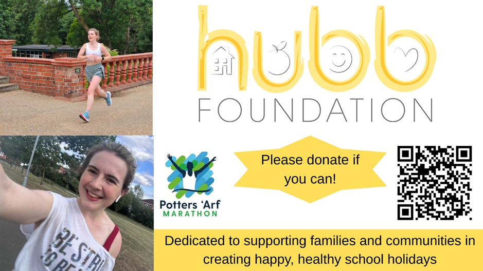 I’ve interviewed teachers from various schools, analysed data, and listened to parents and children describe the difference The Hubb makes, from providing food and fun activities during the holidays, to giving families a sense of belonging. That’s why I chose to support The Hubb Foundation. Running my first ’Arf feels like a small way I can give something back.”